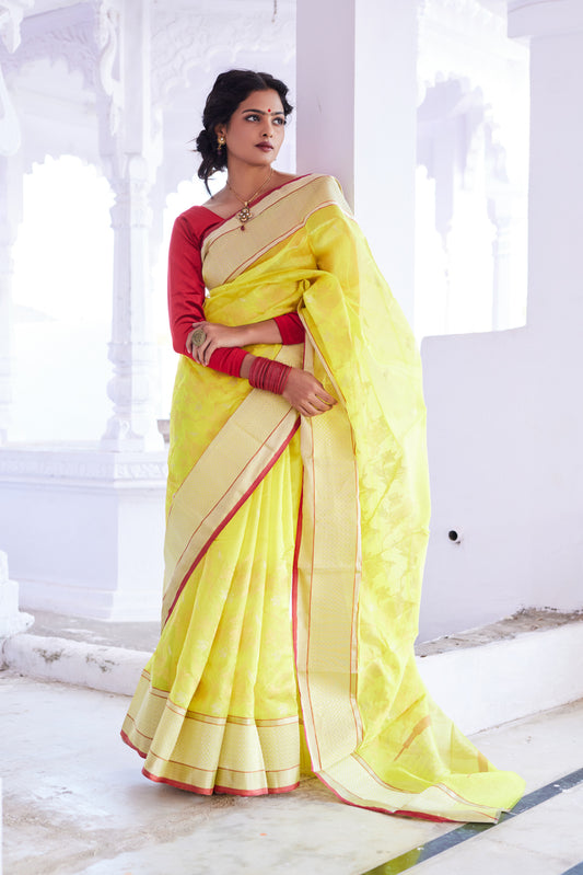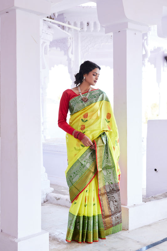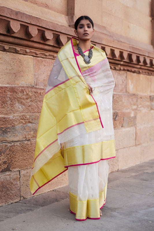 Surajmukhi Jaal Pattu Silk Chanderi Saree