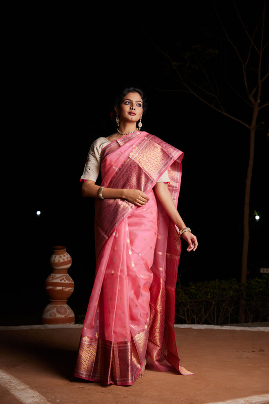 Gulabi Noor Tilak Buti Pure Silk Chanderi Saree