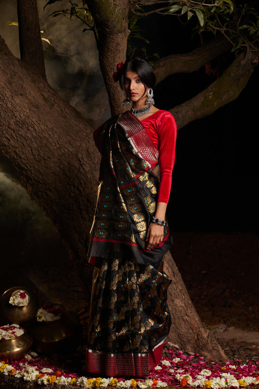 Siyah Noor Meenakari Jaal Pure Silk Chanderi Saree