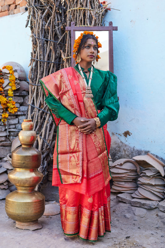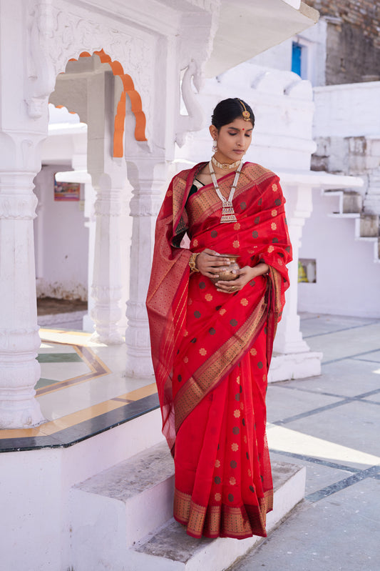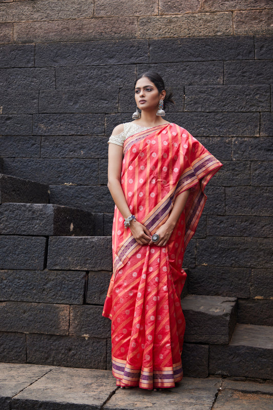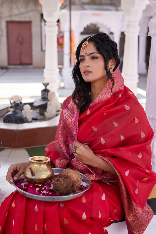 Surkh Ibadat Pattu Silk Chanderi Saree