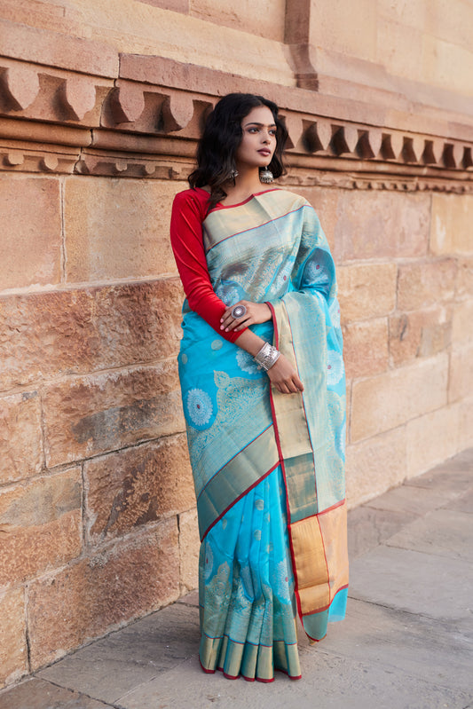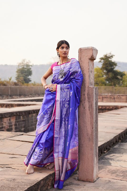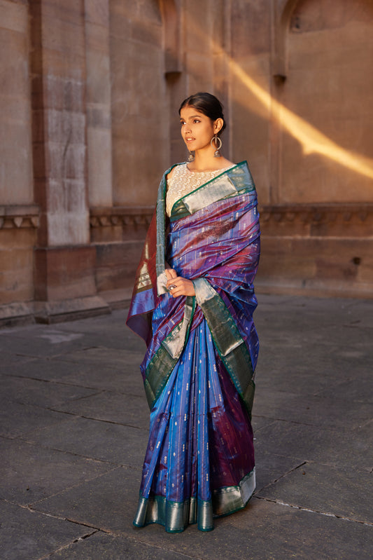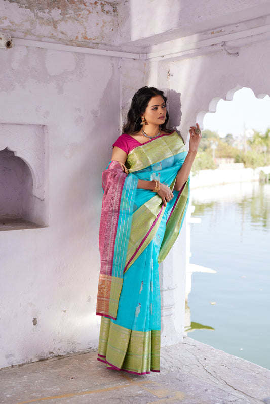 Aasmani Mehar Pattu Silk Chanderi Saree