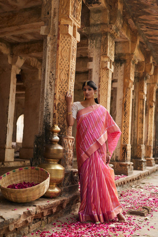 Gulabi Rang Pure Silk Chanderi Saree