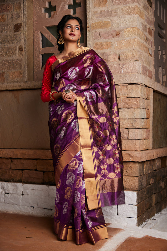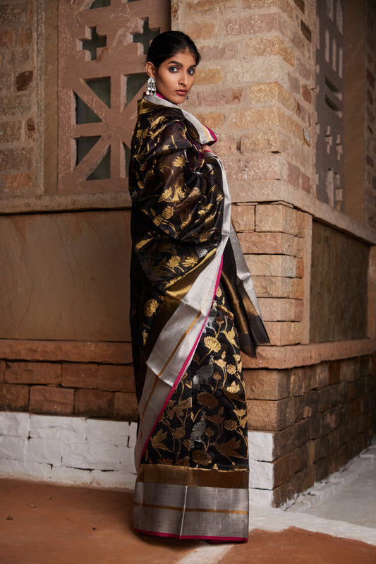 Gulbadan Shaam Pattu Silk Chanderi Saree