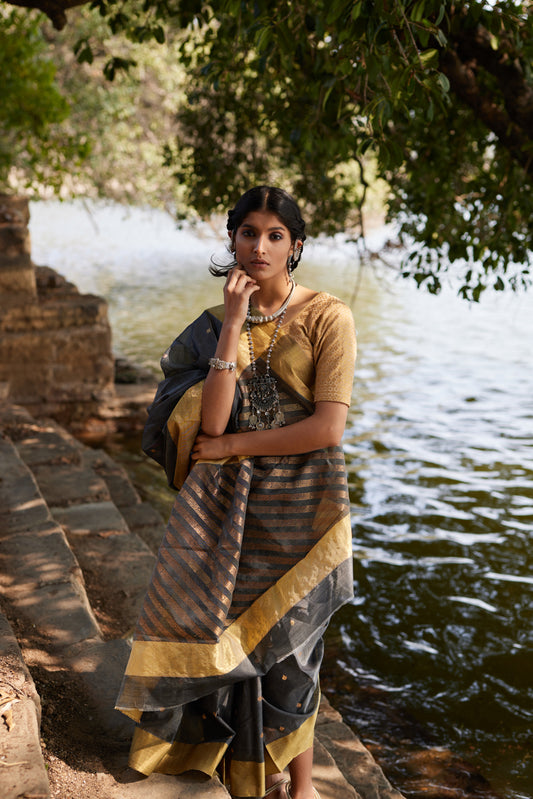 Zarrin Nazakat Striped Pure Silk Chanderi Saree