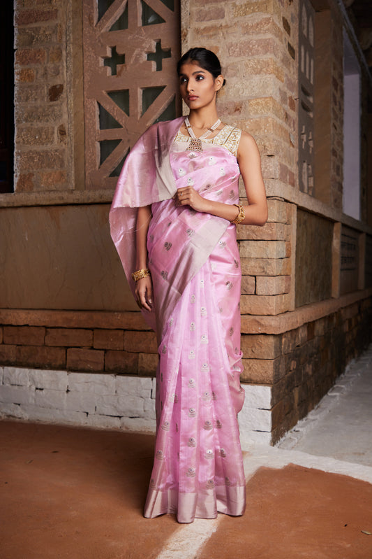 Gulabi Guldasta Meenakari Pure Silk Chanderi Saree