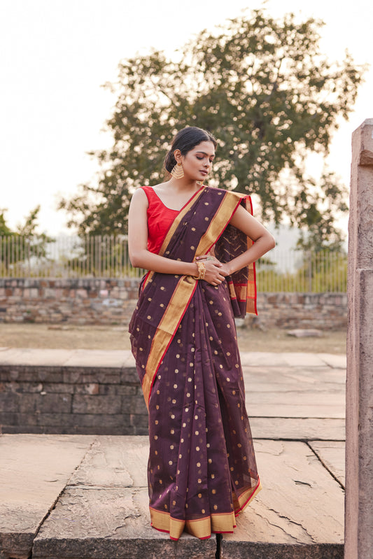 Mahroom Chandni Cotton Silk Chanderi Saree