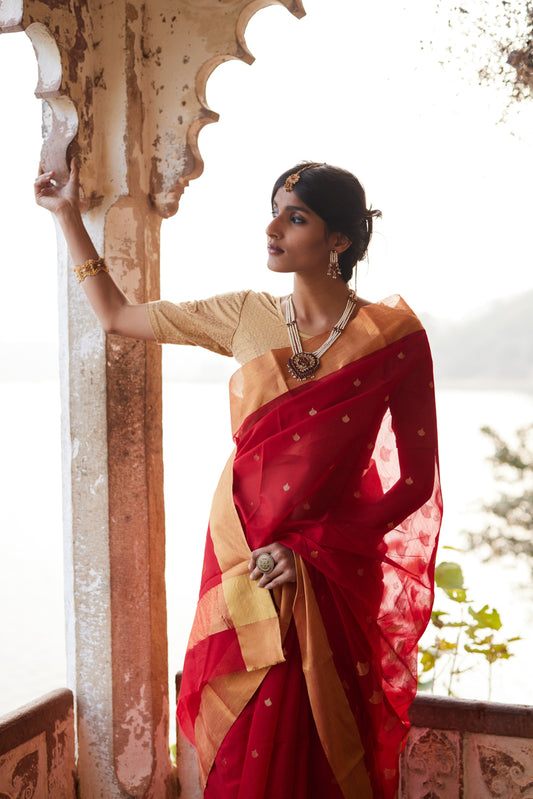 Surkh Shaam Meena Kari Pure Silk Chanderi Saree