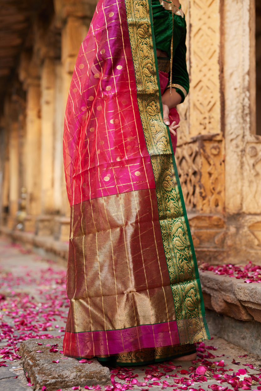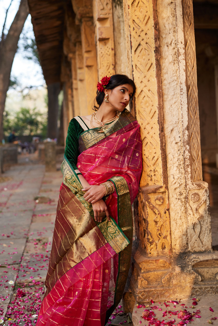 Disclaimer: The blouse worn by the model in the images is for styling purposes only. The color of the saree may vary slightly from the images due to differences in screen brightness or color saturation, please acknowledge subtle variations.